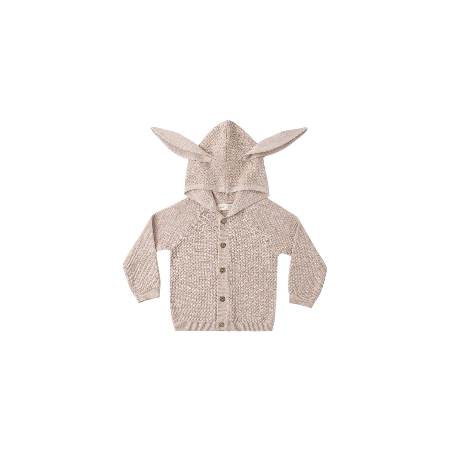 Hop into spring in our Bunny Knit Sweater. This hooded sweater features floppy bunny ears and coconut buttons down the front.