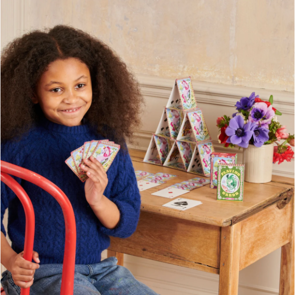 A magical assortment of two playing card sets by illustrator Linda Bleck, one featuring an elegantly rearing unicorn and the other a graceful, flying dragon. Each set includes standard-sized cards printed on high-quality blue core paper—perfect for players young and old. A wonderful introduction to card games of all kinds and a gift the whole family can enjoy. This assortment of 12 playing cards arrives in a self-contained display box, including 2 styles with 6 of each style.