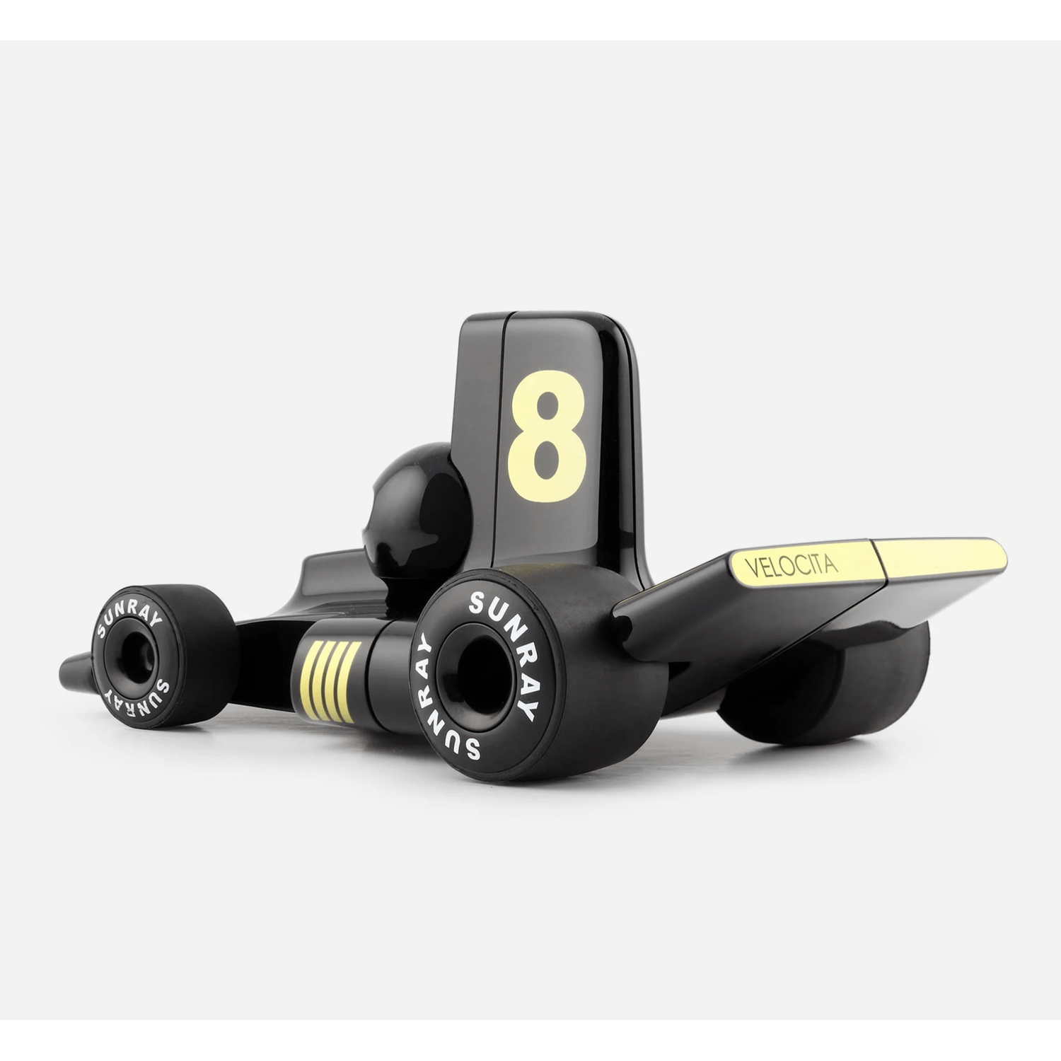 The Velocita collection by Playforever was inspired by the F1 scene of this era. Rubber tyres, stream-lined shapes and vibrant, shiny colours make this one of the coolest cars they have ever made! Its miniature size is perfect for kids, but it looks equally striking on the shelf or mantlepiece too. A real collector's piece.