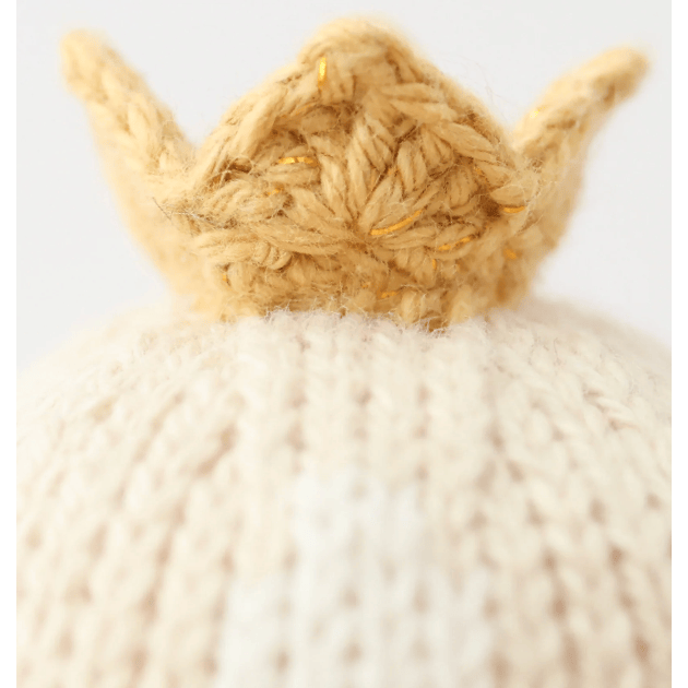 Tiny Rose is the sweetest little princess dream. Her hand-crocheted golden crown sparkles beautifully and is a total showstopper! Her petal-layered dress is lovingly handcrafted, with each tulip-shaped petal made individually for that classic, storybook silhouette. Look closely and you’ll find her tiny slippers dusted with the lightest sparkle. Every detail is stitched with care in Peru. Rose is pure. magic.