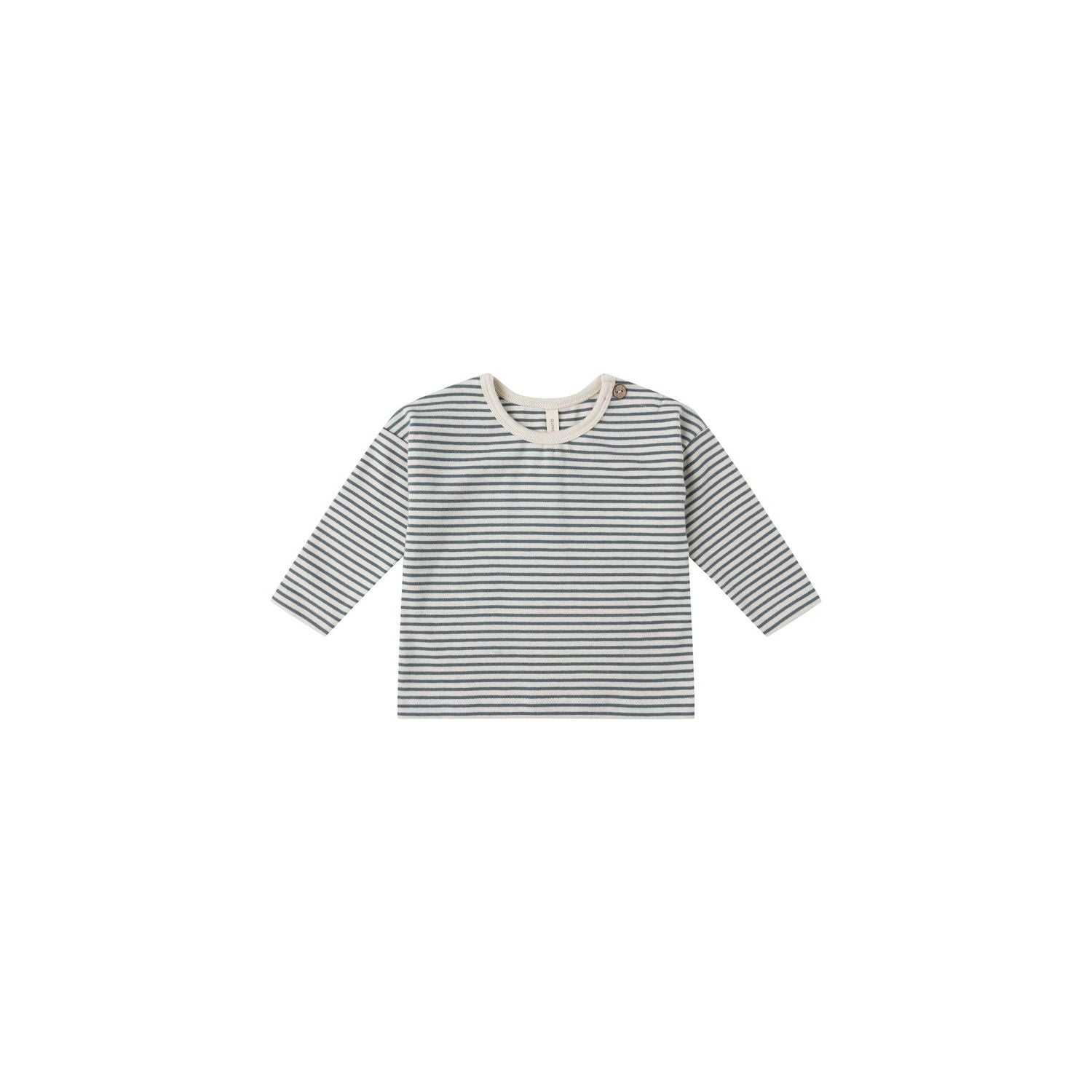 A classic long sleeve tee made from soft cotton, featuring coconut buttons at the shoulder for easy changing. Featuring our 'ocean micro stripe' print. Care: Machine wash cold. Tumble dry low. Made of 98% organic cotton / 2% elastane. |