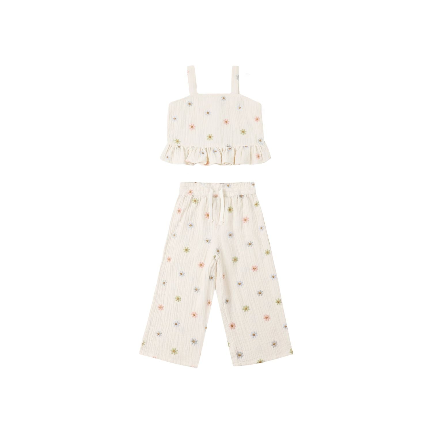 Rylee + Cru Kayli Set - Embroidered Daisies Tops & Bottoms Rylee + Cru