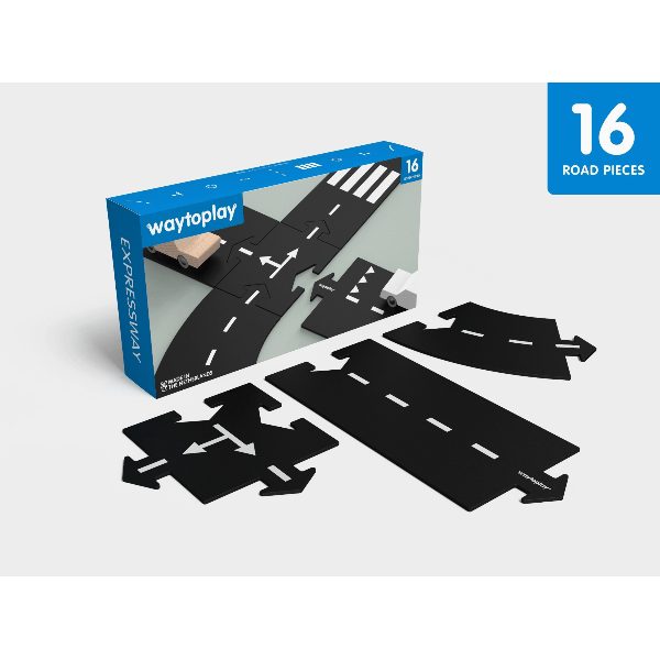 This is the most popular waytoplay set with 16 road parts. The waytoplay Expressway is a great toy for imaginative play. Watch your children create their very own circuits and road maps for their favourite toys and vehicles.