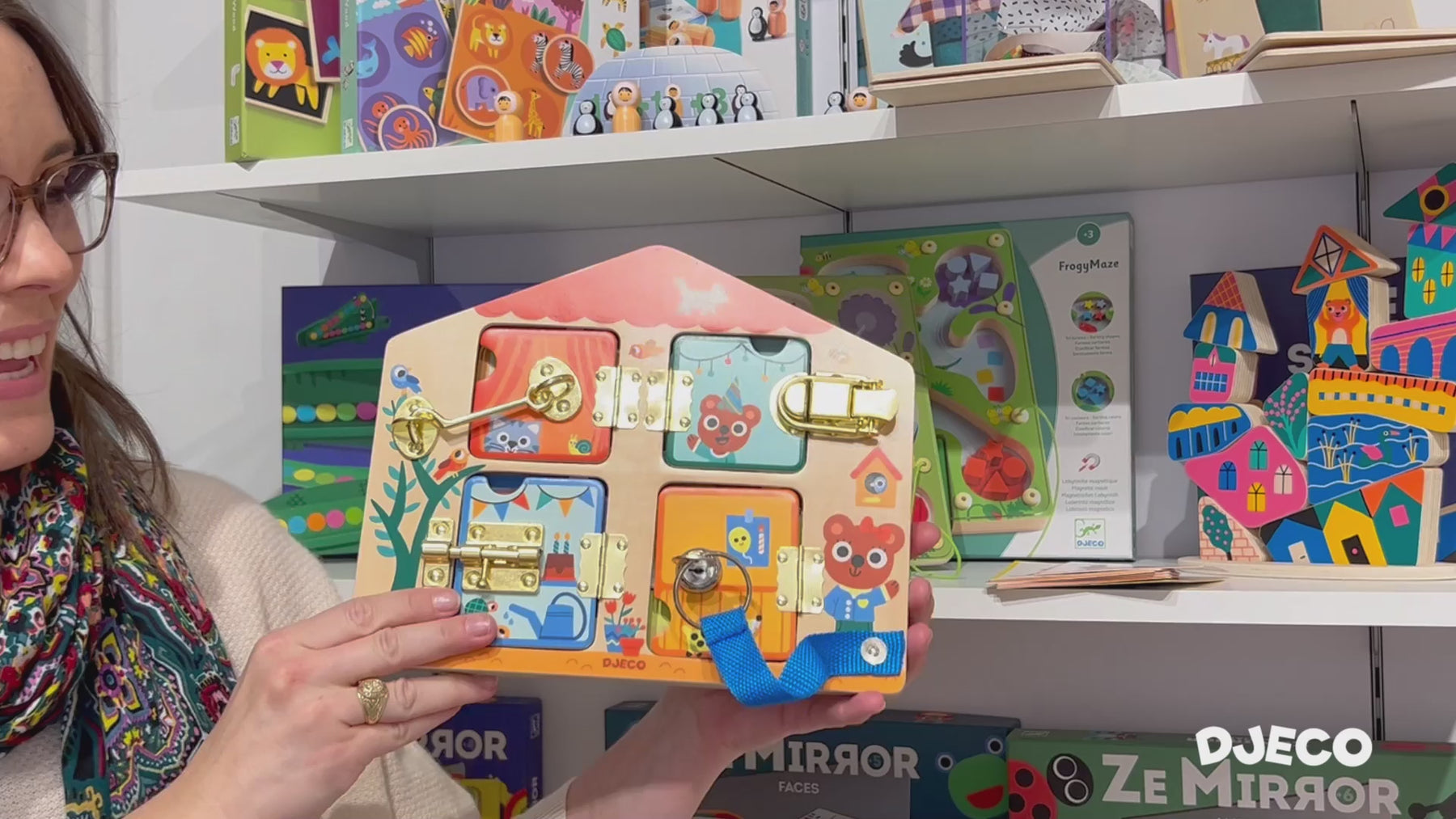 A house-shaped dexterity game where children learn to open and close locks. Discover the little cat’s birthday party in pictures. For ages 3 and up, Cabanalock supports your child in the early learning stages.